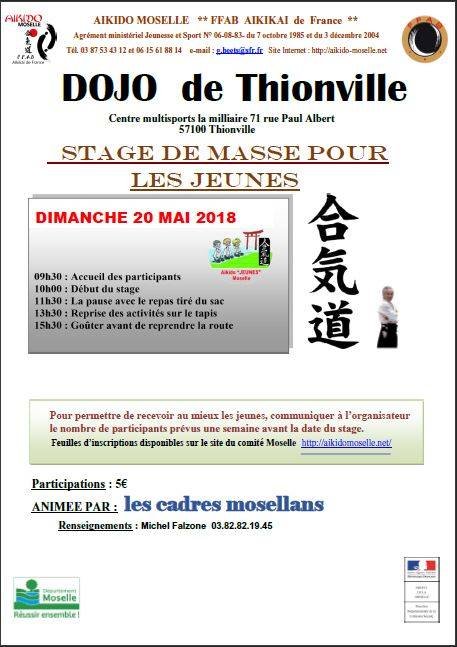Le dimanche 20 mai 2018 grand stage de masse en Moselle, pour les jeunes de 6 à 17 ans sur le tapis du dojo de la Milliaire à Thionville.